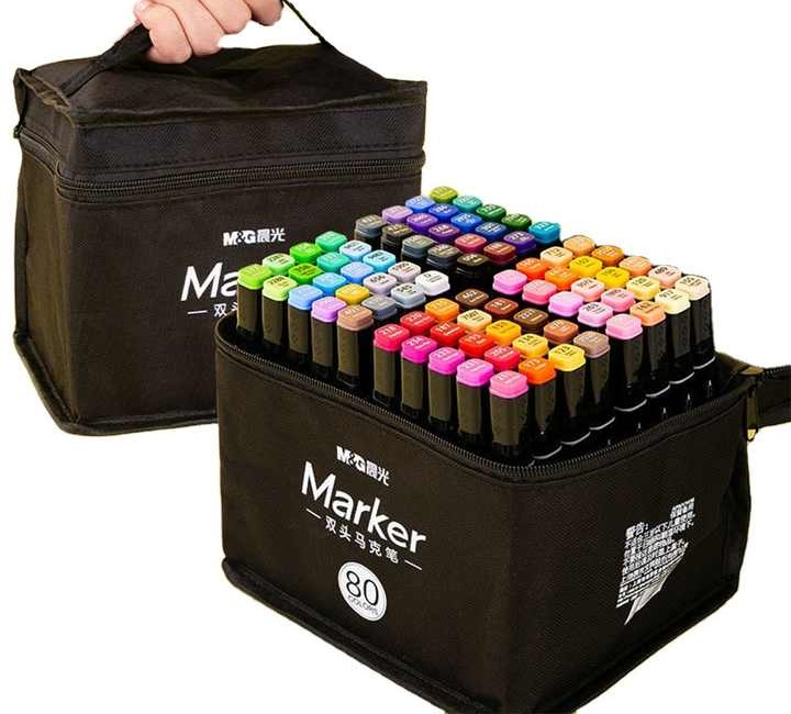 80 لون من اقلام التحديد مزدوجة الرأس من M&G في حقيبة قماشية