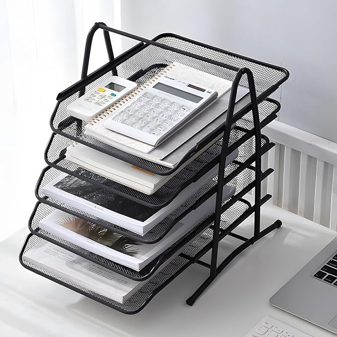سعة كبيرة ومساحة تخزين واسعة: يوفر منظم المكتب المكون من 5 طبقات مساحة تخزين واسعة لمجموعة متنوعة من اللوازم المكتبية وأحجام الورق، بما في ذلك الملفات والبريد والمستندات والمجلدات والفواتير والرسائل. يساعد تصميمه متعدد الطبقات مع خمس صواني على إزالة الفوضى من مكتبك أو سطح الطاولة مع الحفاظ على سهولة الوصول إلى كل شيء.